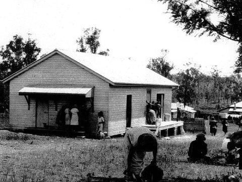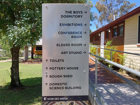 The idea for establishing a historic precinct grew out of the celebration of Cherbourg’s centenary in 2004. Sandra Morgan and her sister Lesley Williams were collecting items for an historic display when they discovered that the old Ration Shed (constructed 1927) at the bottom of the footy oval – still intact. It was from the Ration Shed that those on the Settlement received rations, primarily flour, sugar and meat and at times rice, oatmeal and sago, in exchange for work undertaken within the Settlement. They decided that the building should be preserved and relocated back to the centre of the settlement and adapted as a museum.
